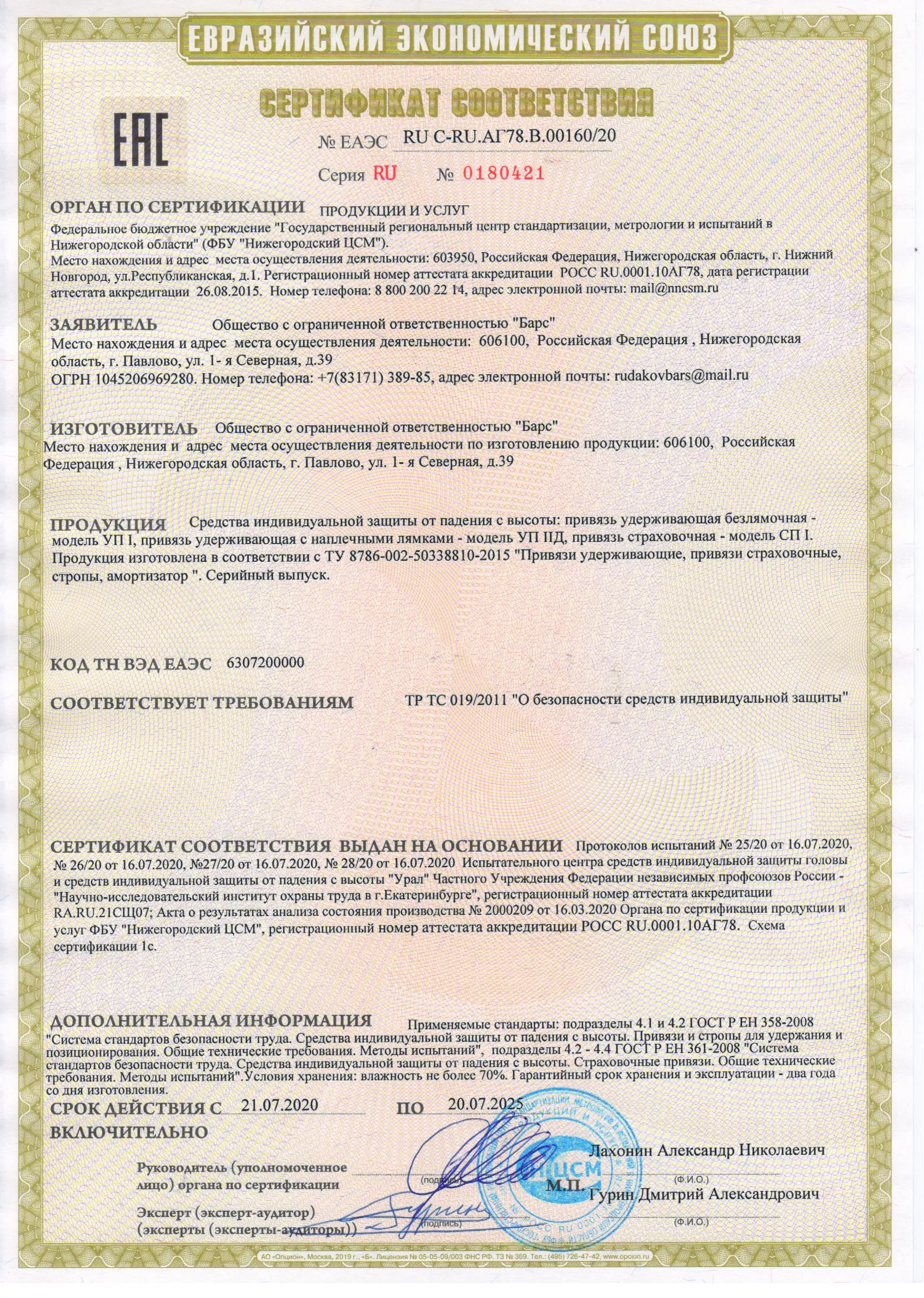 ООО «ТПК Барс» изготовит и поставит страховочные и удерживающие системы по ГОСТ их компоненты, используемые как СИЗ для предотвращения падения человека с высоты или эвакуации из опасных зон (колодцы, траншеи, котлованы и т.п.) при монтажных и ремонтно-восстановительных и других видах работ.